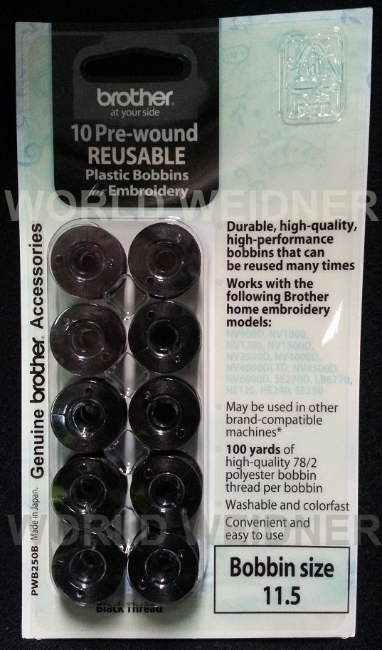 Brother 10pk Plastic Embroidery Bobbins Class 15 SA156