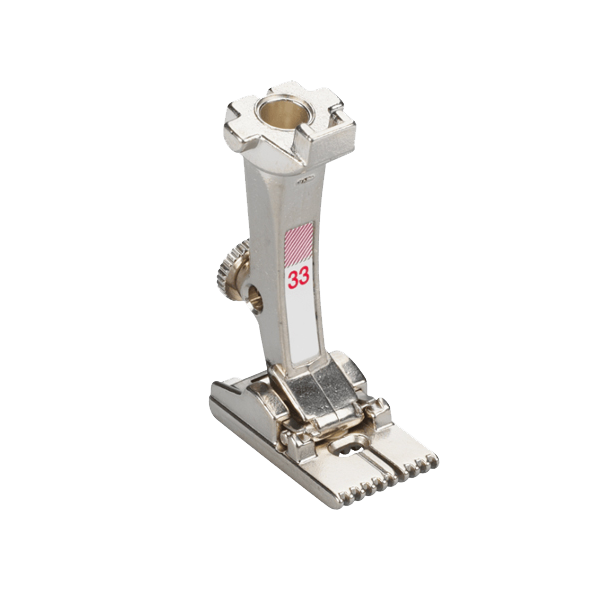 Pintuck Foot with 9 Grooves #33 is especially suitable for lightweight fabrics such as batiste. When sewing pintucks, it is used with a double needle.