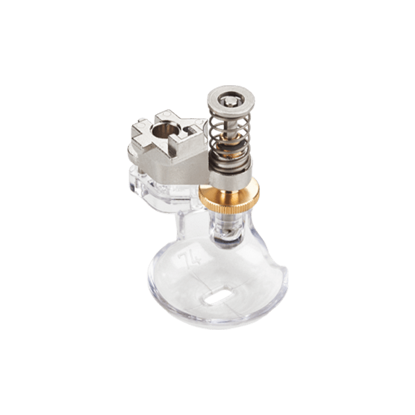Quilting around raised or dimensional elements of your quilt is easier than ever with the help of the Adjustable Gliding Cup Foot #74. Smoothly glide over lifted or uneven edges of embellishments and appliqués. The transparent cup allows for clear sight lines to the needle and fabric giving you more control over the creative process.