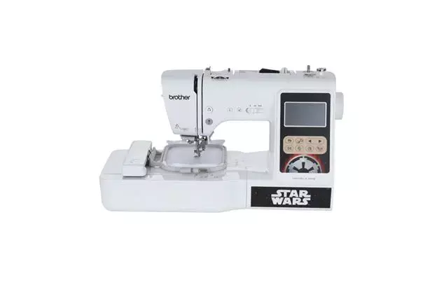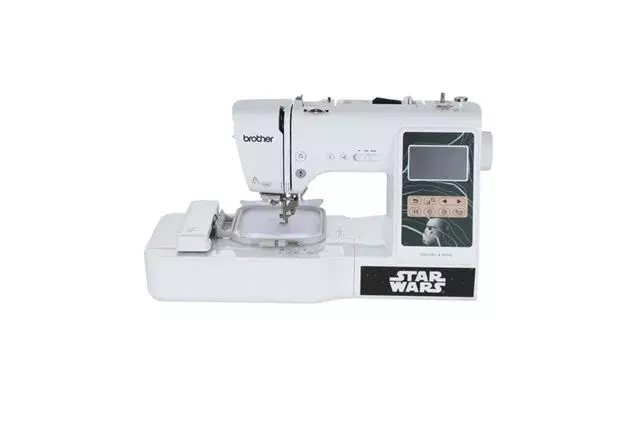 The LB5500S comes with three Star Wars™ inspired faceplates (Darth Vader™, a stormtrooper, and the Empire symbol), a decorative adhesive design, plus a promo code for 10 free Star Wars™ iBroidery downloads for some out-of-this-world embroidery!