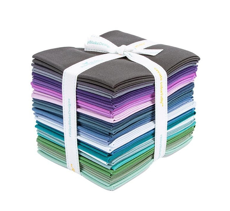 This Fat Quarter precut bundle includes 24 pieces from the Riley Blake Designs Confetti Cotton™ collection. Colors included are Seafoam, Whisper, Bleached Denim, Powder, Princess, Eggplant, Pistachio, Wedgewood, Cadet, Dusk, Violet, Iron, Lodgepole, Rainforest, Stargazer, Coastal Blue, Orchid, Charcoal, Cactus, Oceanside, Colonial, Oxford Blue, Grape, and Lead.