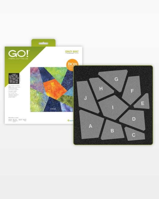 Quilters have been asking and we have answered! The GO! Crazy Quilt die creates a 6” block and fits a GO!, GO! Big and Studio fabric cutter with adapter. This die cuts up to 5 layers of fabric in one pass, so with 10 different fabrics and in two passes, you can create 10 scrappy blocks. Bust your stash and create striking quilts with just one die!