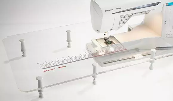 Convert the free arm of your HUSQVARNA VIKING® Sewing Machine to an extended flat bed so you can sew large projects and quilts easily.