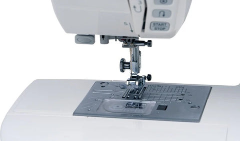 Janome's 4120QDC-T is equipped with seven essential buttons. These buttons include a start/stop button, easy reverse button, lock stitch button, thread trimmer button, twin needle button, speed control slider, and a memorized needle up/down button. With all these convenient features, you will be able to quickly and effortlessly navigate your machine.