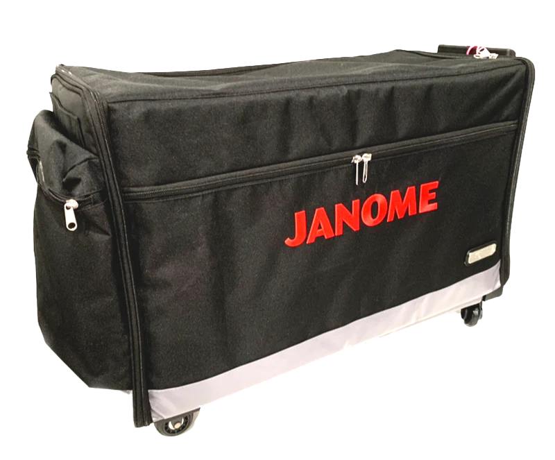 This high quality roller case was built specifically for the Janome Continental M7 Professional Sewing and Quilting Machine and has a variety of features to make transporting the machine easier. The Janome Sewing Machine Trolley for Continental M7  has the Janome logo on the side with silver plate with 'continental' logo. Side pocket to hold extra wide table available inside.  The Janome Sewing Machine Trolley for Continental M7 is on smooth caster wheels to make transporting your Janome Continental M7 sewing machine very easy.