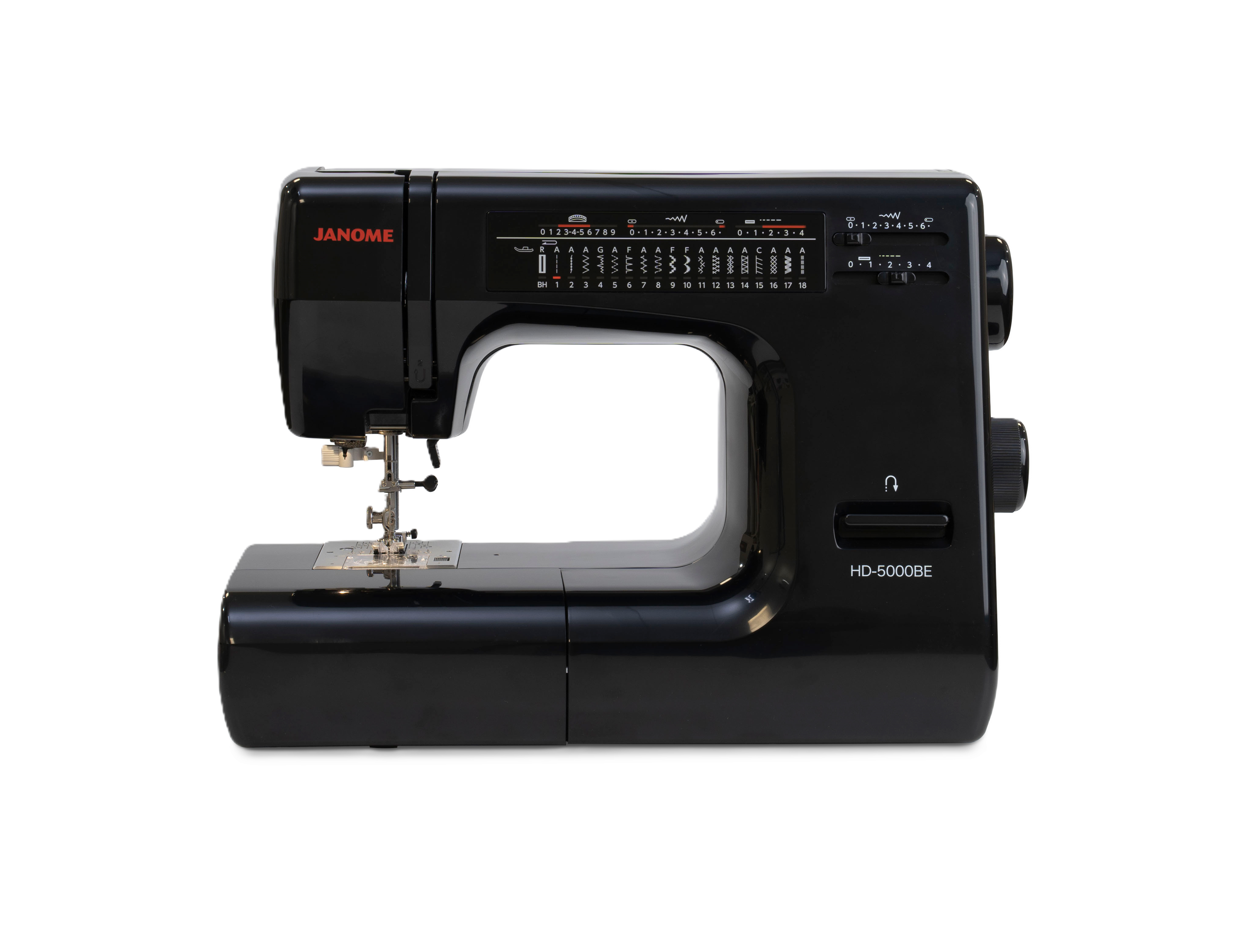 The HD-5000 Black Edition is a heavy-duty machine, perfect for a beginner or sewist looking to do a wide range of sewing. A handy instructional guide is located in the top tray door of the machine, which indicates the feet and stitch settings for a variety of sewing tasks. Heavy-duty aluminum body and 18 stitches, including a one-step buttonhole, give you the tools you need to handle any kind of sewing project. Stitch length and width adjustment are conveniently located on the front of the machine, and a hardcover comes standard for easy storage.