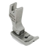 With this piping foot, the sewing machine is able to make piping cords with ease without using an iron and adhesive interlining. This piping foot can be widely used for sewing edges of bags and attaching decorative lines on knick knacks. There is slot that is approximately 3mm in diameter for passing a cord to the undersurface of piping foot on the left side of needle entry hole. This is a kind of “hinged foot", which has a spring at the rear and the front part is raised. It is easy to go over the multi-layered portion.