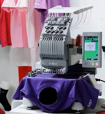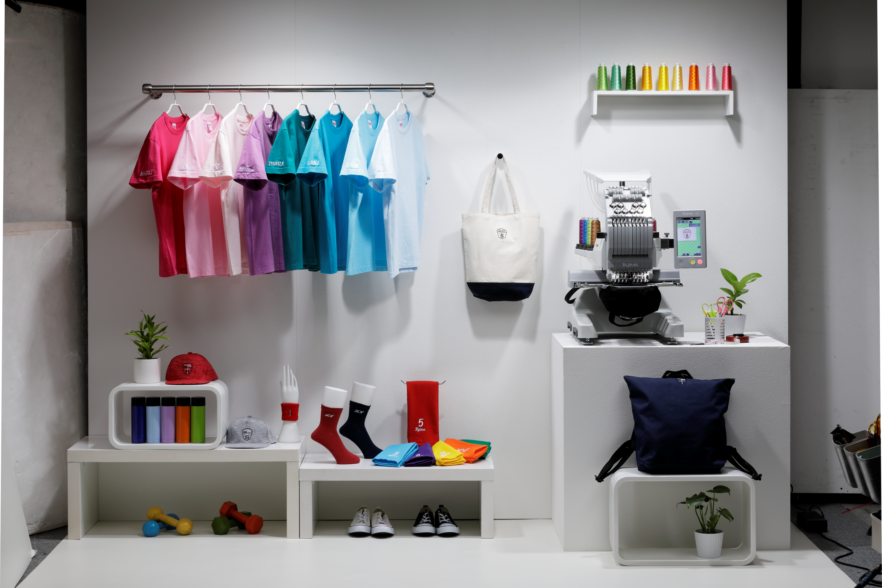 JUKI SAI can complete 800 stitches a minute while maintaining high-speed through various stitch lengths. Two sets of each frame are included to facilitate production time. As the machine embroiders, you have the ability to set up the following product for production.