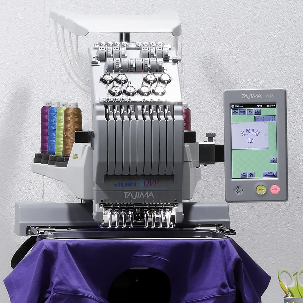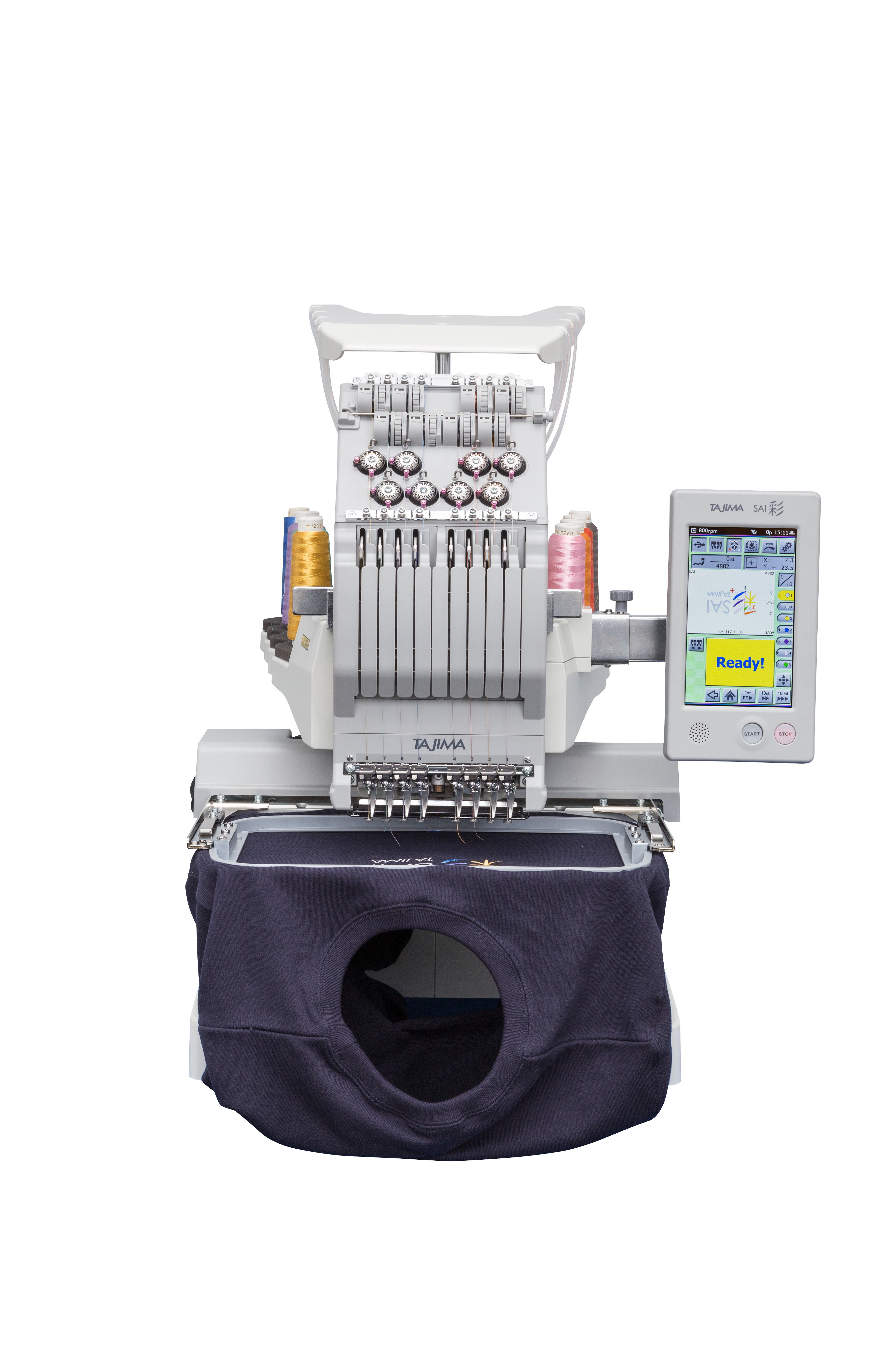 SAI was born in collaboration with Tajima from the voices of JUKI customers. Bring color to your world with JUKI SAI by Tajima! The TAJIMA SAI is a compact, easy-to-use embroidery machine packed with advanced technologies allowing users, including non-professionals, to achieve professional quality embroidery. With JUKI SAI, embroidery enthusiasts and professionals alike will enjoy an 8 needle operation that allows for multi-color creations with fewer thread changes. With the addition of 800 stitches per minute, your designs will quickly become a reality! This model offers high-quality finishing and durability with the production power of an industrial embroidery machine condensed into a compact body.
