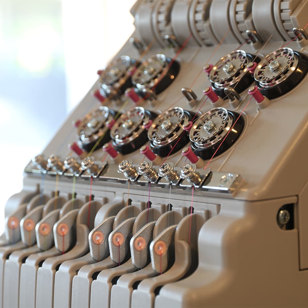 Detects any thread breakage in any of the 8 upper threads or an under thread during operation. The machine will automatically stop when thread breakage is detected.