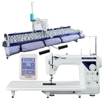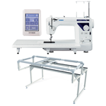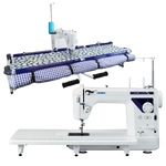 Recognized by many as an exceptional quilting machine, the Juki TL-15 offers the space, control, and visibility that sewists need when working on quilts to improve the free-motion quilting experience. Juki has included features on the TL-15 to make sewing easier, such as a predetermined need stop position when the machine stops sewing, a regulator to adjust the pressure of the presser foot, easy-to-use replacement of the bobbin, and auto threading of the needle. The automatic thread cutter feature makes piecing a quilt together easier and faster, since you will never have to stop to cut them manually. For ease of use, there is a knee lever that can be used to lift the presser foot to free up your hands for maneuvering fabric. The Juki TL-15 comes with numerous accessories, including several presser feet, Foot Switch Stopper, Quilt Guide for Upper Feed Presser Foot, Quilting Foot Front Open Toe, an auxiliary table, a large extension table, the lever to lift the presser foot hands-free, and the foot controller.