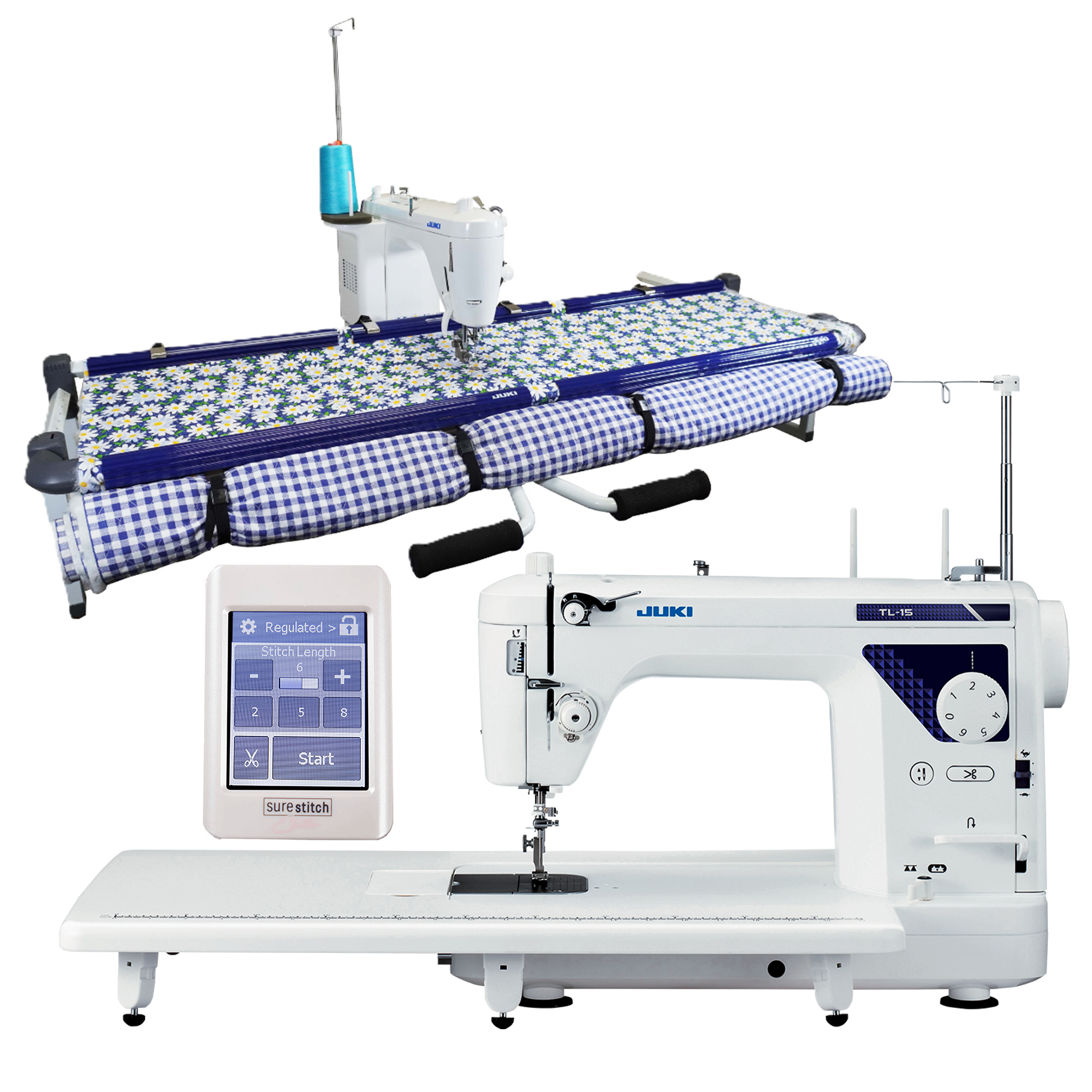 The JUKI TL-15 is a single needle, lockstitch, portable machine, constructed of aluminum die-casting to ensure industrial-quality sewing. A high-performance wonder, these stitches are even and consistent. Although it is considered a home machine, the Juki TL-15 is truly a professional quality quilting machine with a heavy-duty motor much like those seen in commercial machines. With advanced features, such as an industrial sub-tension system, variable speed control slider, and bright white LED lighting, this machine is built for precision sewing. With a large work area of up to 23 inches (with auxiliary table attached), the TL-15 can handle large quilt, sewing or home decor project with ease. Quilts can be made on any sewing machine; however, if you want a better, easier sewing experience that ends in beautifully professional results, then a professional-quality quilting machine is what you need.