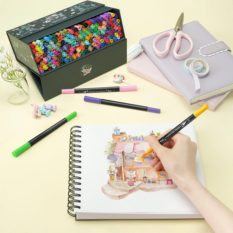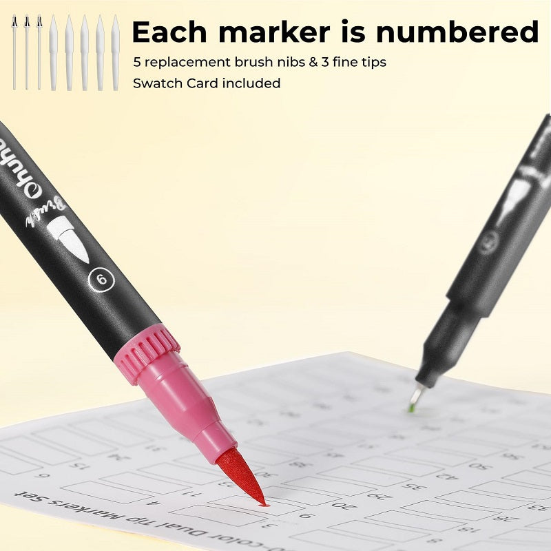 These dual markers for journaling include 160 vibrant colors, and each marker is numbered for easier finding your preferred colors. Also, a blank DIY color swatch card is included so that you can edit and organize the colors according to your preferences.