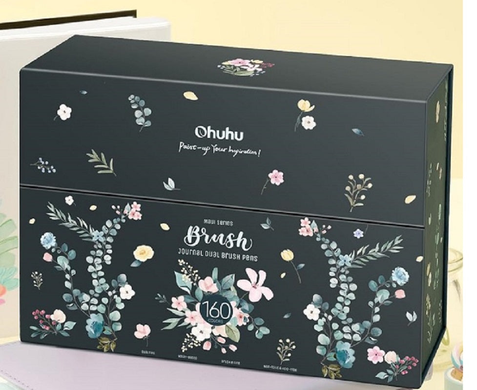 Ohuhu Maui 160ct Brush/Fineliner Dual Tip Water Based Color Markers with Black Marker Holder Y30-80600-45