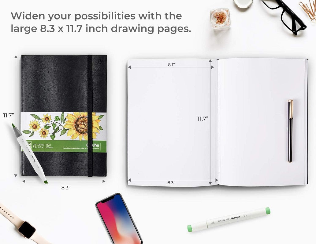 Widen your possibilities with the large 8.3 x 11.7 inch drawing pages. Both beginners and seasoned art pros will relish in the freedom granted by this plus sized paper!