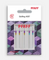 Allows easier fabric penetration and helps eliminate skipped stitches with a special tapered tip of the needle. For optimum performance, change your needle and/or type of fabric every 6 - 8 hours of sewing.