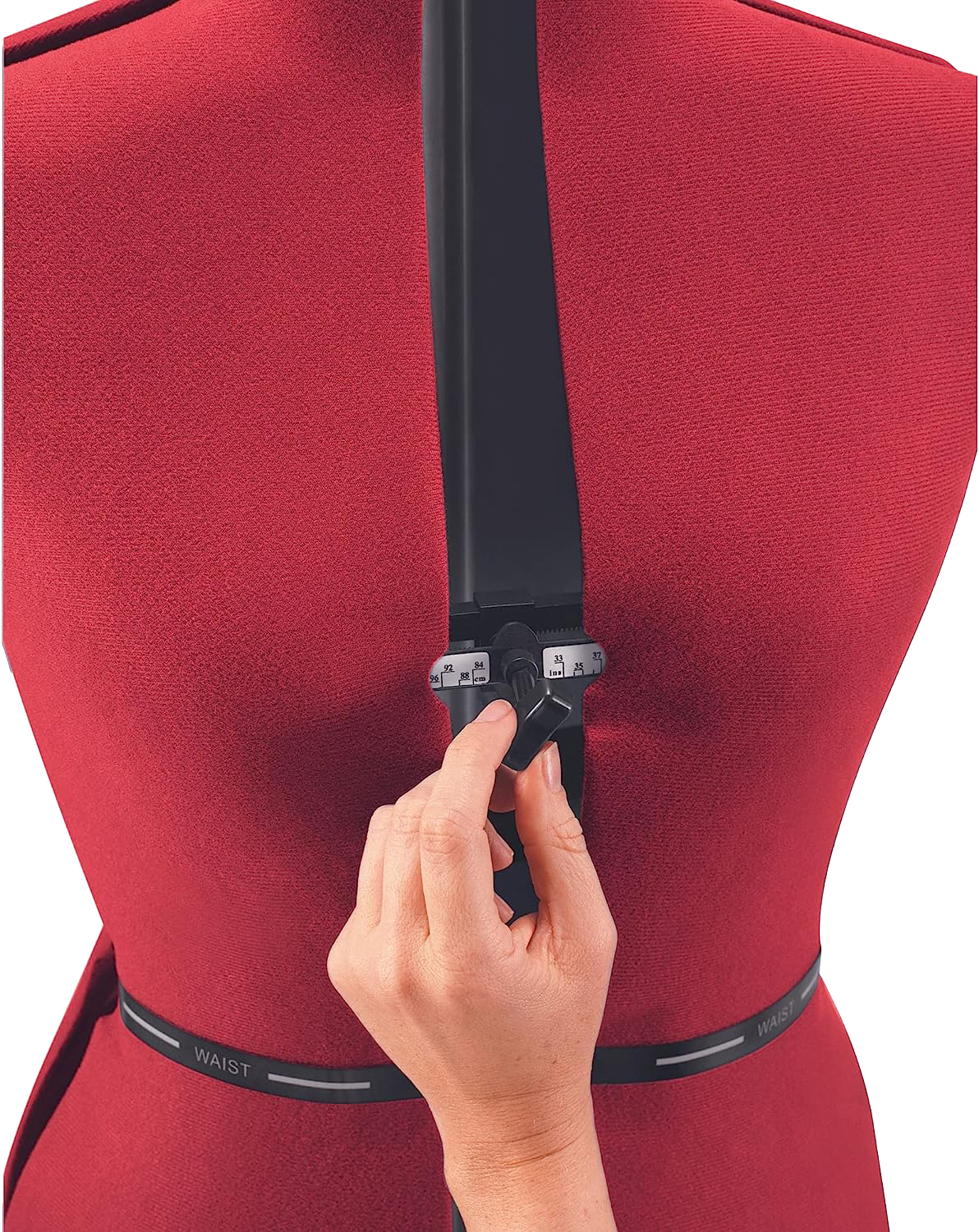 This dress form is perfect for precision sewing or even a display piece! The dress form's 12 dials allow you to find the perfect fit in seconds. The Foam-Backed Fabric Exterior allows you to easily pin dresses, skirts, tops and patterns. The easy tool-free Height Adjustment lets you customize the dress form to your height in a snap. Enjoy absolute accuracy with the easy-basting Hem Gauge. The form requires basic assembly, but no tools are required. When adjusting the product, remember to crank each dial evenly as there is a tension system in place. To expand up or down multiple sizes, it is suggested that you turn each dial a little bit in order, and then go back and adjust each one a bit more.