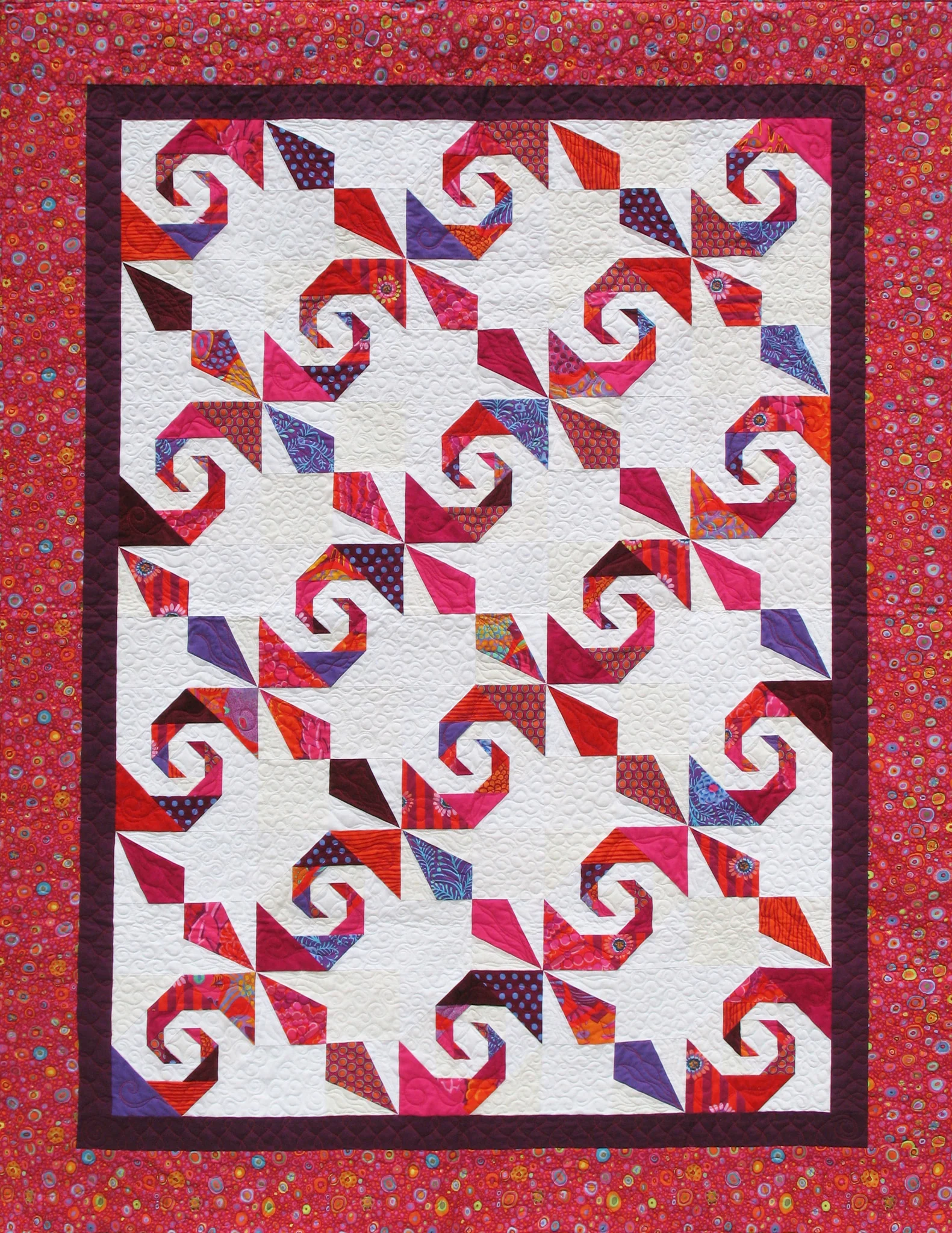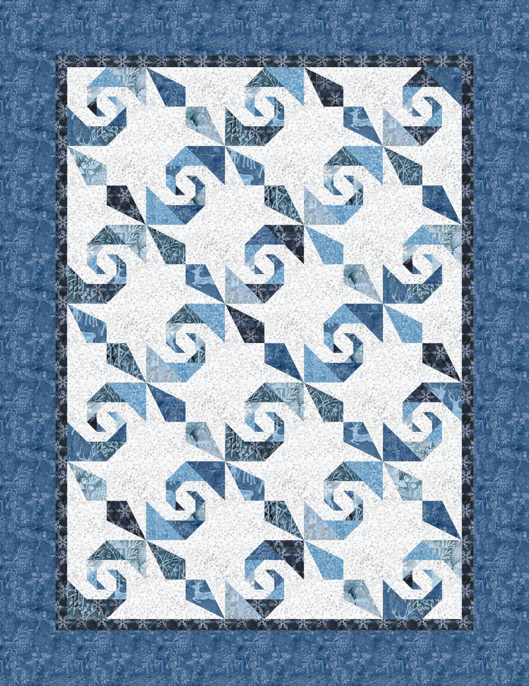 Have you ever wanted to make a Snail’s Trail quilt? If so, then this quilt’s for you! Filigree is a unique variation on a traditional Snail’s Trail block. Instead of a four patch in the center, there are two pointy triangles giving you inter-locking twists - a unique effect reminding us of filigree scrollwork. With the addition of the Corner Beam units between the Snail’s Trail blocks you have even more spiky interest!
