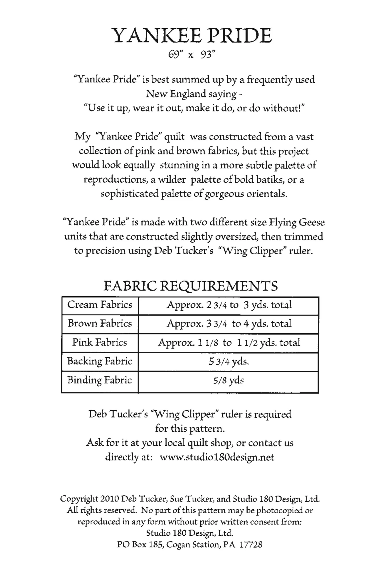Studio 180 Design Yankee Pride Quilting Pattern DTP028
