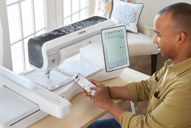 Brother PRTT1 Tubular Arm Expandable Sliding Support Table being used