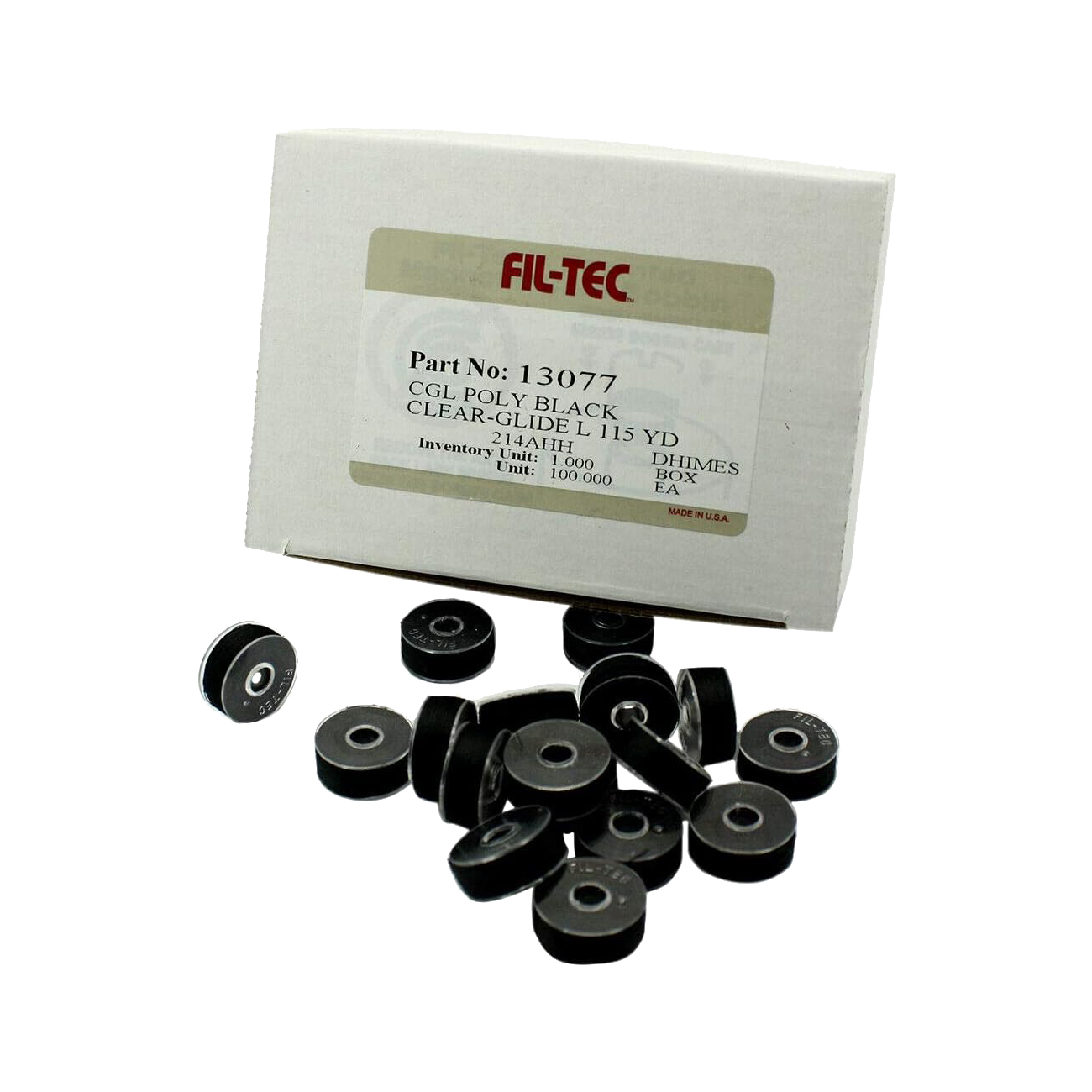 Fil-tec Clear Glide Black Class 15 / Size A Prewound Embroidery Bobbins 8pc Tube 13328