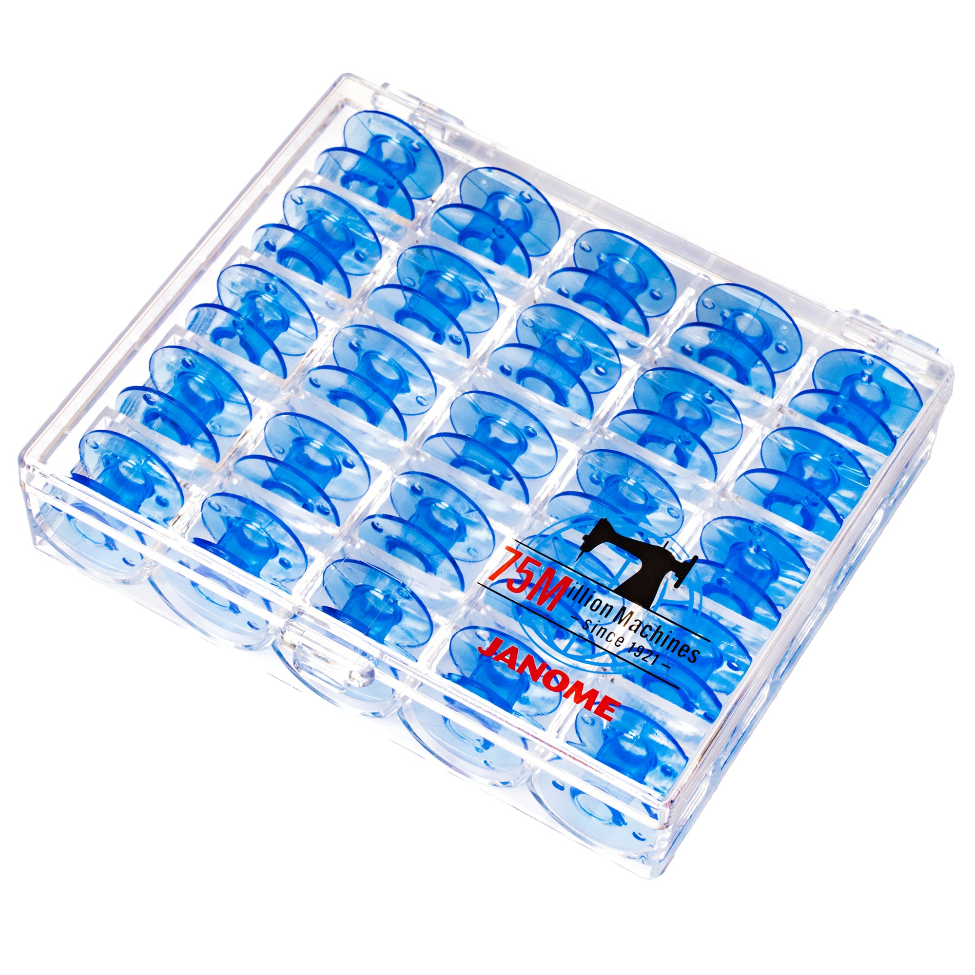 Janome 25 Pack Blue Butterfly Bobbins and Case Class 15 / Style J 200277084