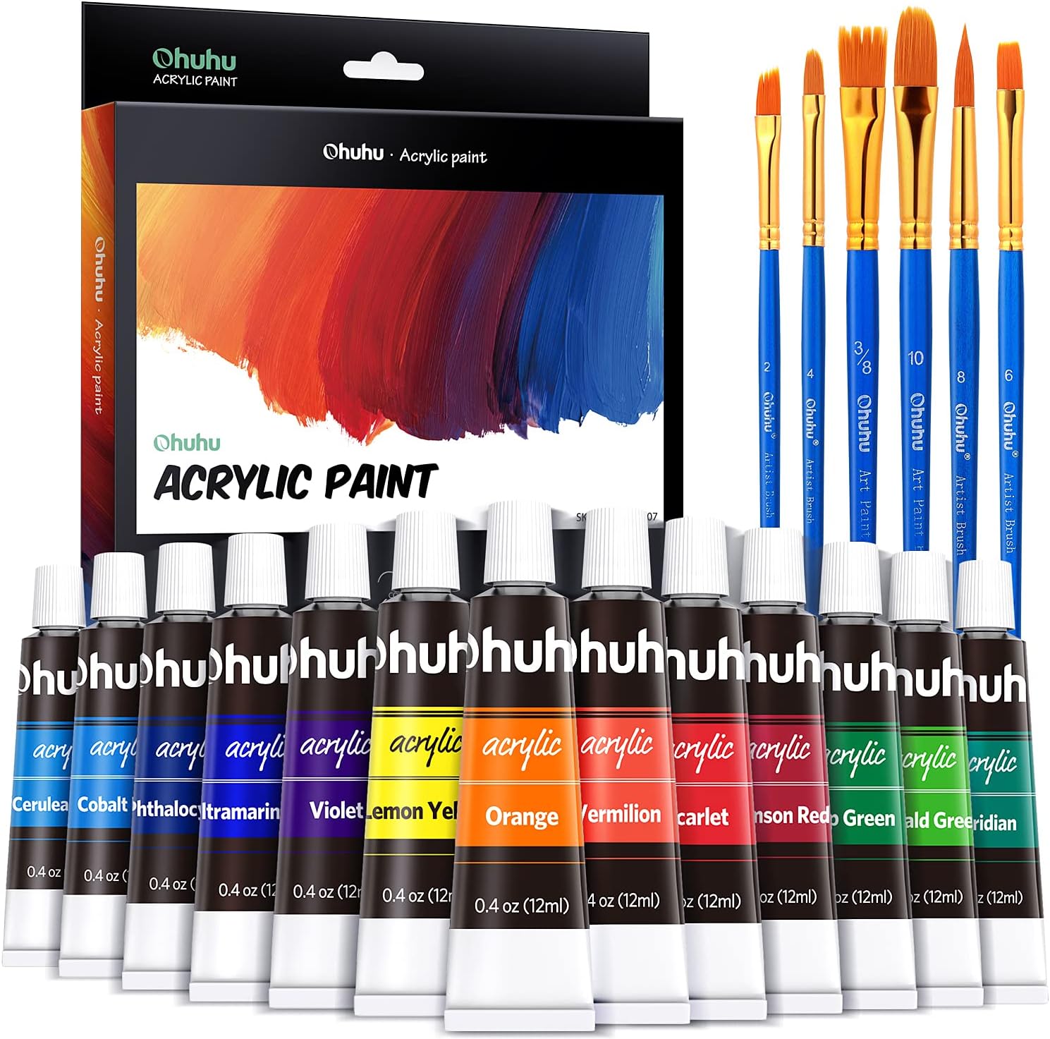 Ohuhu 24ct Acrylic Paint Tubes with 6 Brushes Y30-80700-07