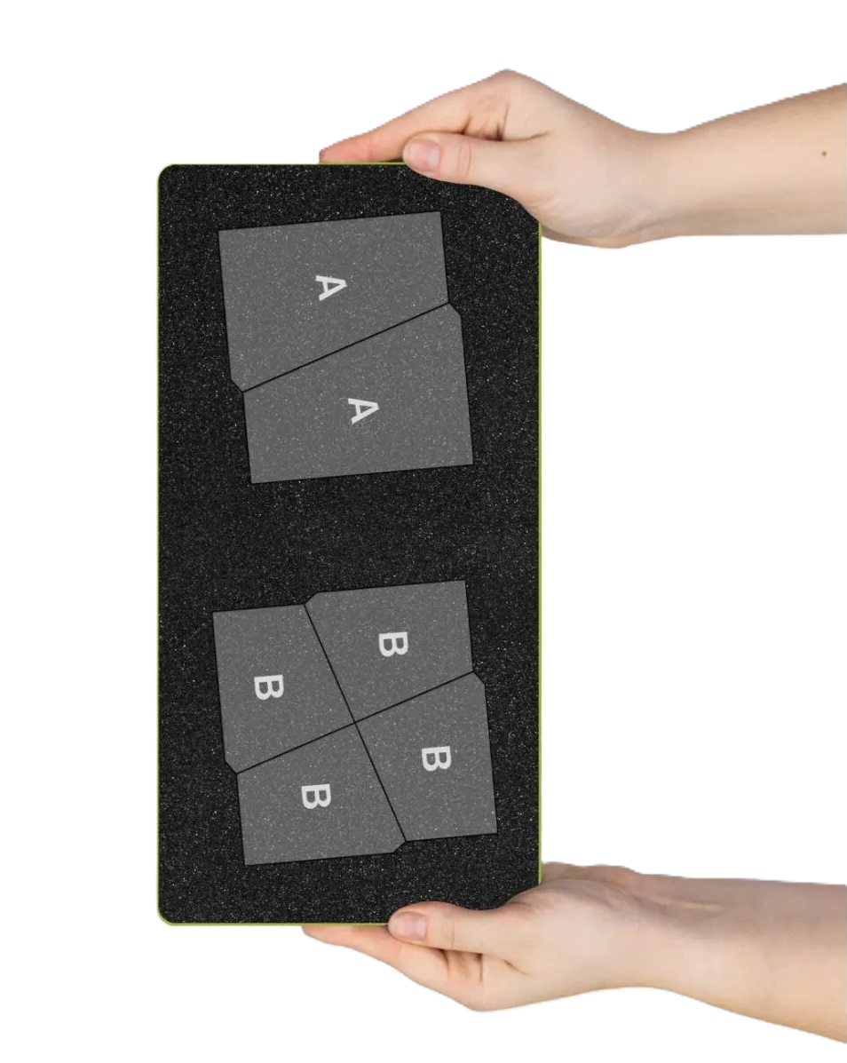 • Mix and match A and B shapes on die board to create a variety of block designs.