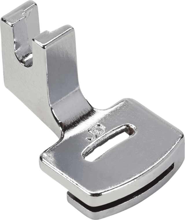 As the sole of this foot does not lie flat on the feed dog, the Gathering Foot feeds the fabric unevenly. Therefore a charming gathering effect results while sewing.