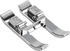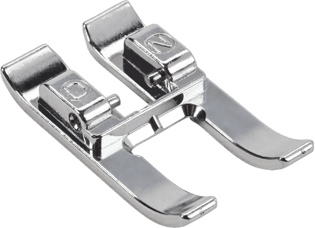 This foot makes quick work of appliqués and embroidery projects, as well as the sewing over of lines and patterns. The open shape ensures a clear view of the seam, and is therefore ideal for sewing on tapes and ribbon. The open embroidery foot for Dual Feed is provided with a recess on the back side of the presser foot to activate the integrated Dual Feed. This allows an even feed of several fabric layers and “sticky” materials such as leather or plastic.