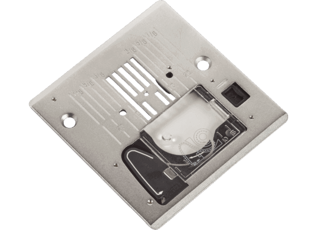 The Straight stitch plate can be used for straightstitching and embroidery, as well as for CutWork projects. When straight-stitching, perfect stitch formation is achieved by using this stitch plate with a presser foot with a small opening.