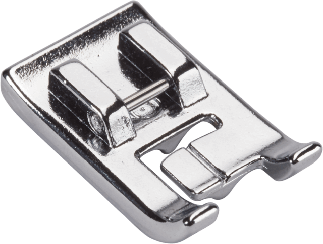 The Piping foot with 2 grooves is suited ideally to create and sew in braids. That gives main points to home furnishing or garments. It is also possible to sew on two cords simultaneously.