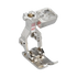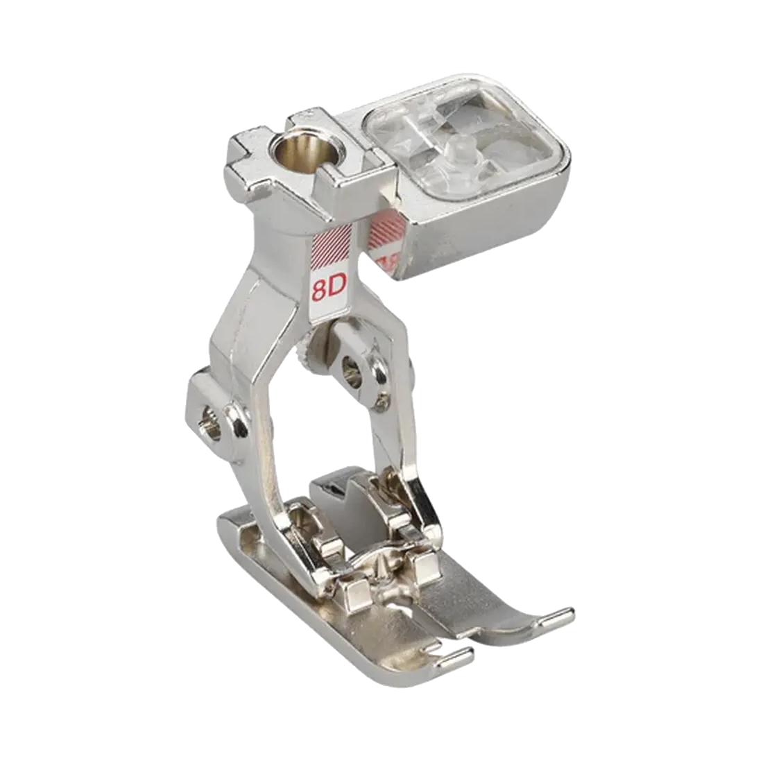 Jeans foot # 8D is especially suited for sewing straight-stitched seams in tough, heavy fabrics such as denim, linen or canvas. Multi-layered fabrics also benefit from its special design. When combined with the straight-stitch plate and its narrow needle opening, which gives the needle the greatest possible stability, the flat sole of this foot makes it easier for the foot to glide over the thick layers of fabric. Jeans foot # 8D is also ideal for straight-stitching medium weight and thin materials. Please note that the new BERNINA Dual Feed only works with type-D presser feet.