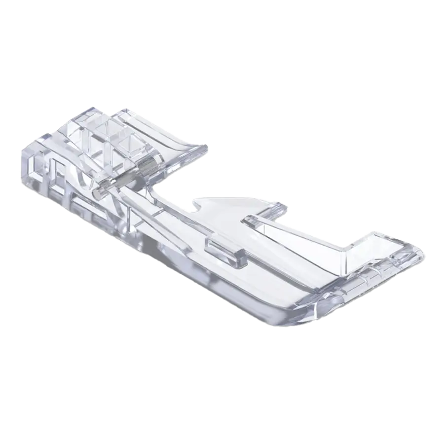 The BERNINA L27 Clear Standard Presser Foot is a versatile addition to your L850 and L860 machines. This transparent foot provides a clear view of your work area, making it easier to guide fabric accurately, especially when sewing corners or circles. It's an essential tool for everyday sewing projects, contributing to perfect seams and edge finishes. The foot also features practical guide markings and includes a tape guide for tapes up to 8 mm wide. With the L27 Clear Standard Presser Foot, you can enhance your precision and create beautiful, professional-quality sewing projects with ease.