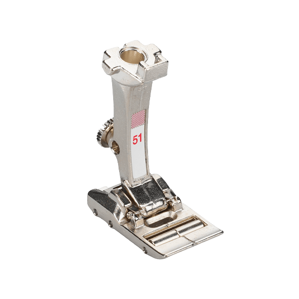 Fabric feed proceeds without a hitch, producing a neat, even stitch pattern. This makes Roller Foot #51 ideal for the decorative topstitching of leather, as well as the construction and repair of bags, raincoats and other garments or home furnishings.