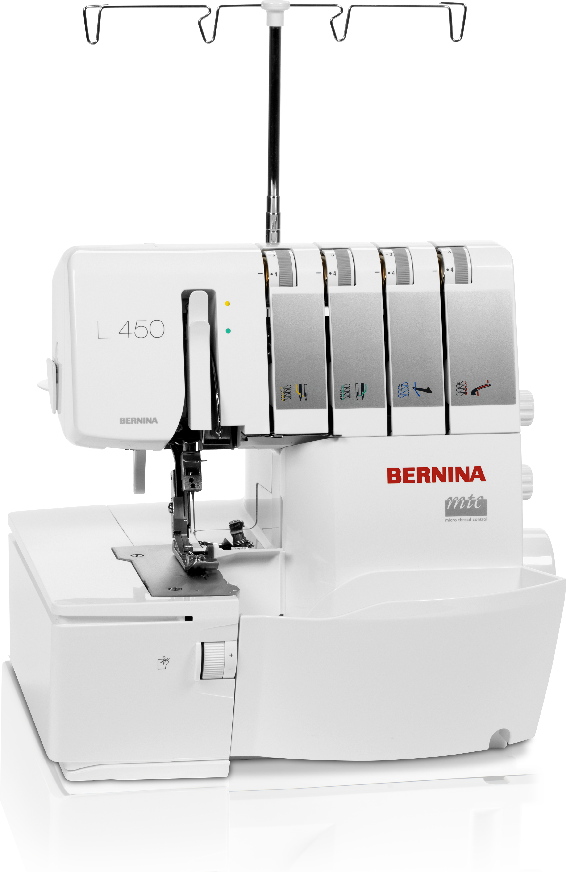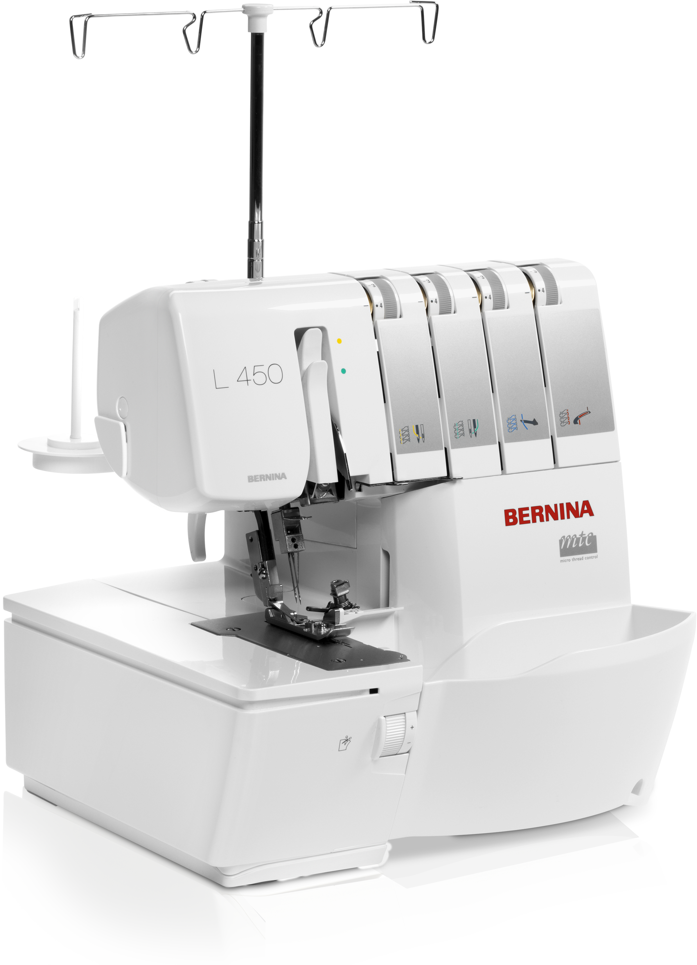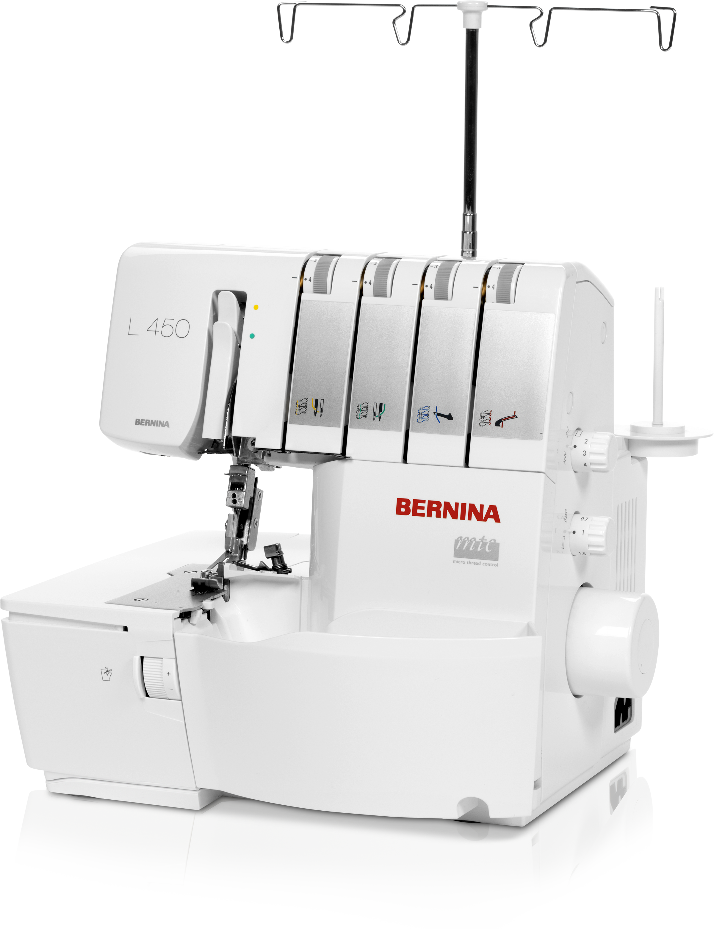 With the BERNINA L 450, you can enjoy the benefits of efficiency and precision as it seamlessly sews, cuts, and finishes seams in one operation. Its 2-3-4 thread stitch formations offer flexibility in selecting the perfect stitch, while delivering professional stitch quality every time. The machine excels in rolled hemming and is suitable for both stretchy and woven fabrics. Additionally, the L 450 features differential feed, enabling automatic ruffles and gathers while ensuring wave-free seams in knits and pucker-free seams in fine fabrics. Whether you're a beginner or an experienced sewist, the L 450 is easy and comfortable to handle. Its easy threading process, aided by the manual Needle Threader, color-coded threading path, and lower looper threader support, simplifies setup, allowing you to start sewing quickly.