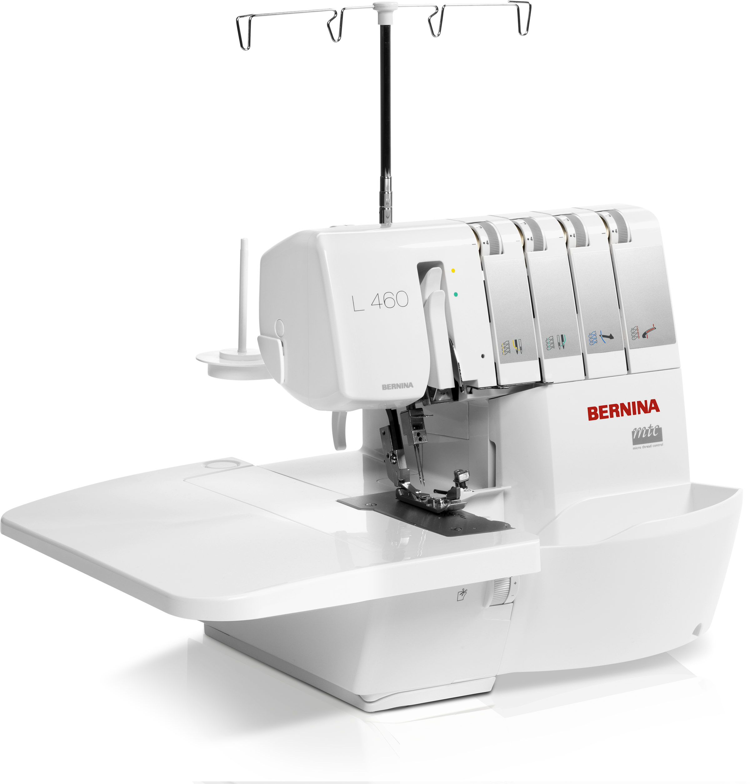 The BERNINA L 460 offers many reasons to choose it for your sewing needs. It excels in producing quick, professional, and durable finishes, making it perfect for both stretchy and woven fabrics. With excellent rolled hemming, flat joining seams, and differential feed for flat and even seams and hems, you can achieve high-quality results effortlessly. The machine also handles ruffles and gathers automatically with the help of the differential feed feature. Whether you want to work with decorative threads, speed up patchwork piecing for quilting, or easily thread the machine using the manual Needle Threader and color-coded threading path, the L 460 has you covered. The well-lit grand workspace with LED sewing lights ensures accurate work and simplified threading of loopers and needles, while the convenient storage options, such as the looper cover and included accessory box, keep your accessories neatly organized and within reach.