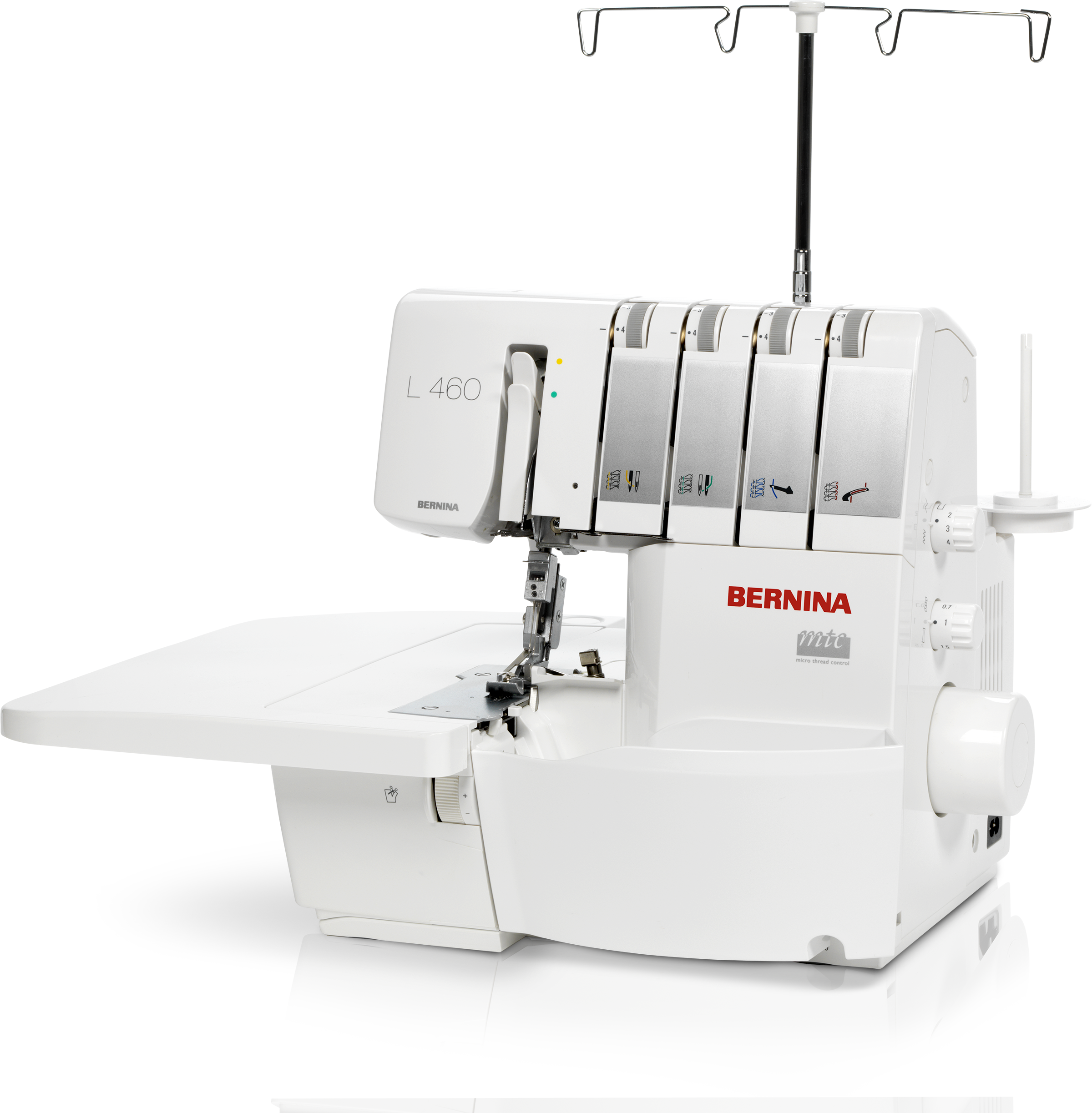 The BERNINA L 460 is a versatile serger that allows you to cut, sew, and finish your projects in a single step. With the Free-Hand System (FHS), you can easily raise and lower the presser foot using your knee, providing better clearance for fabric handling and saving you time. The machine offers exact speed control, allowing you to sew at a maximum speed of 1,500 stitches per minute or stitch by stitch for delicate or heavy fabrics that require extra care. The Slide-on Table extends the sewing area to the left of the needle, providing more space for larger fabrics and improving your view of the sewing project. Additionally, the Micro Thread Control (mtc) feature enables you to fine-tune the over-edge threads, ensuring professional seams and saving time by setting thread tension once, even when adjusting the cutting width and fabric thickness.