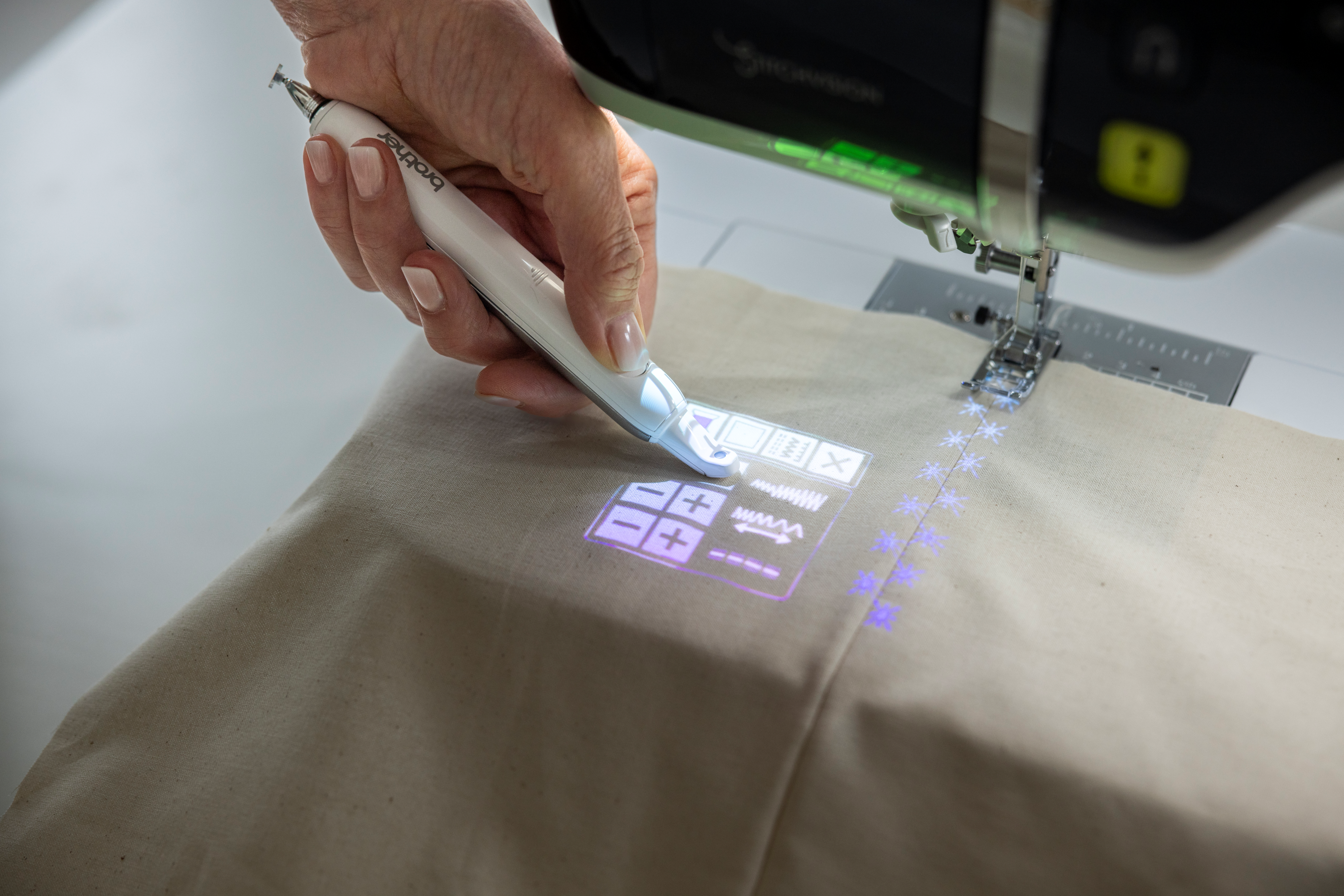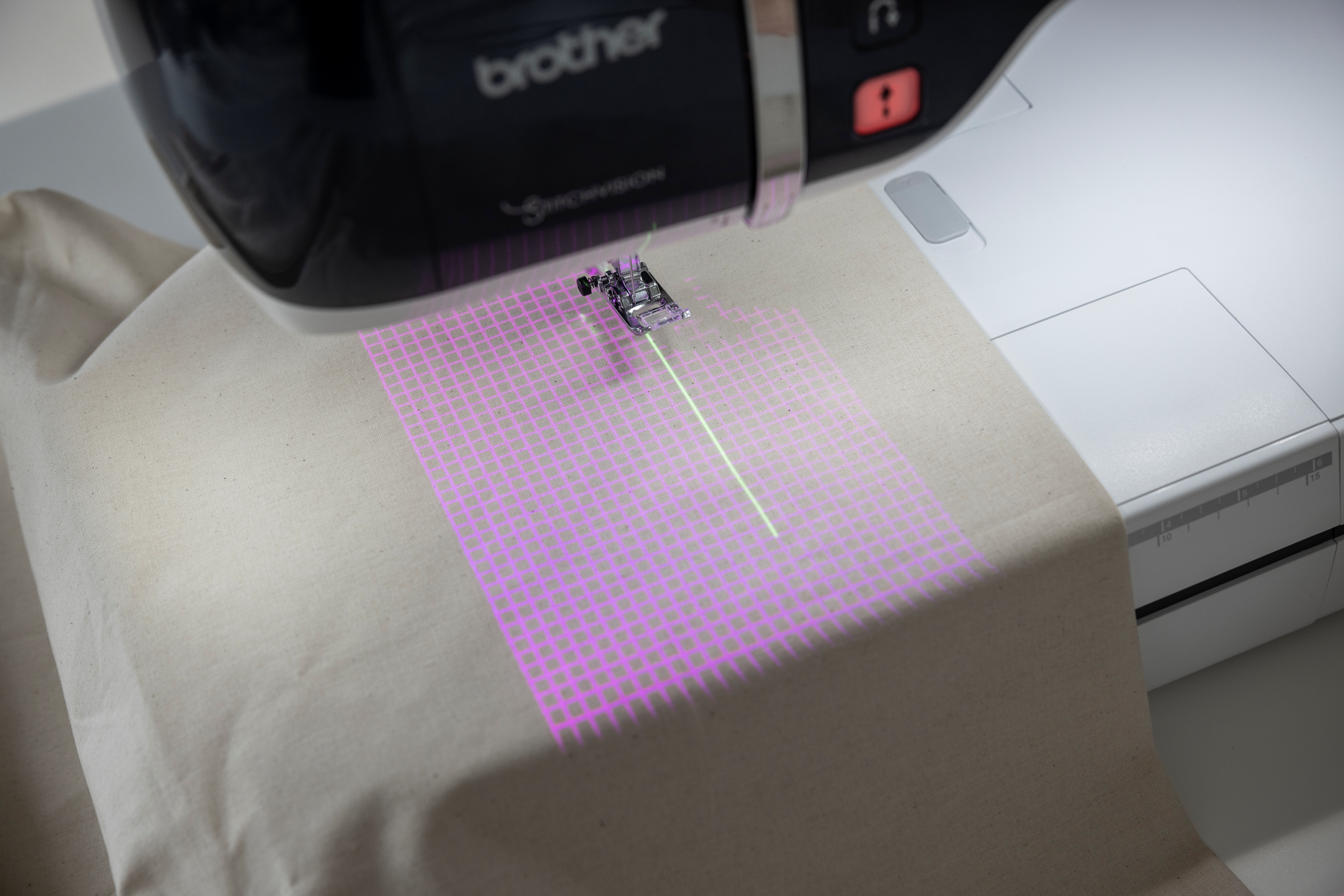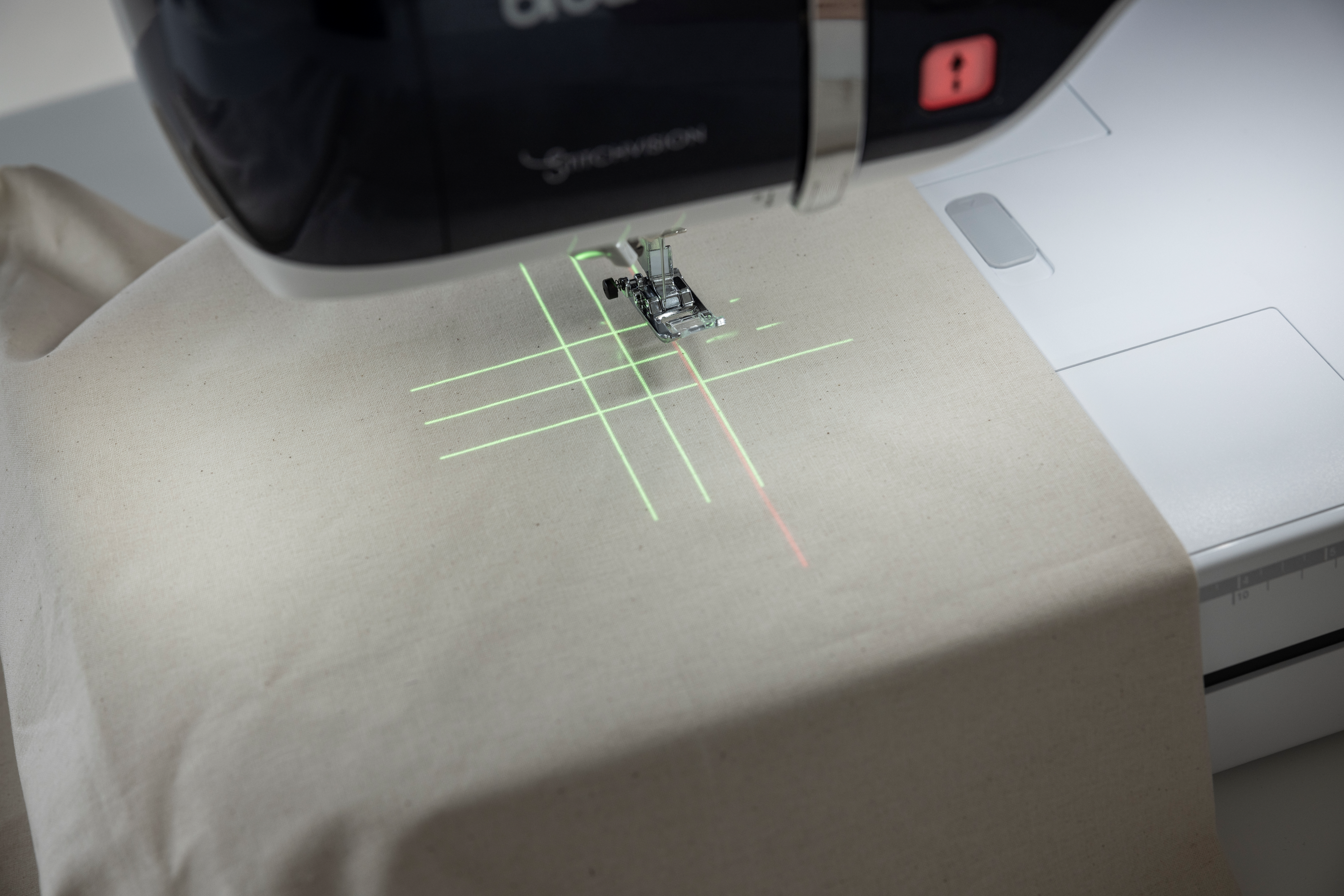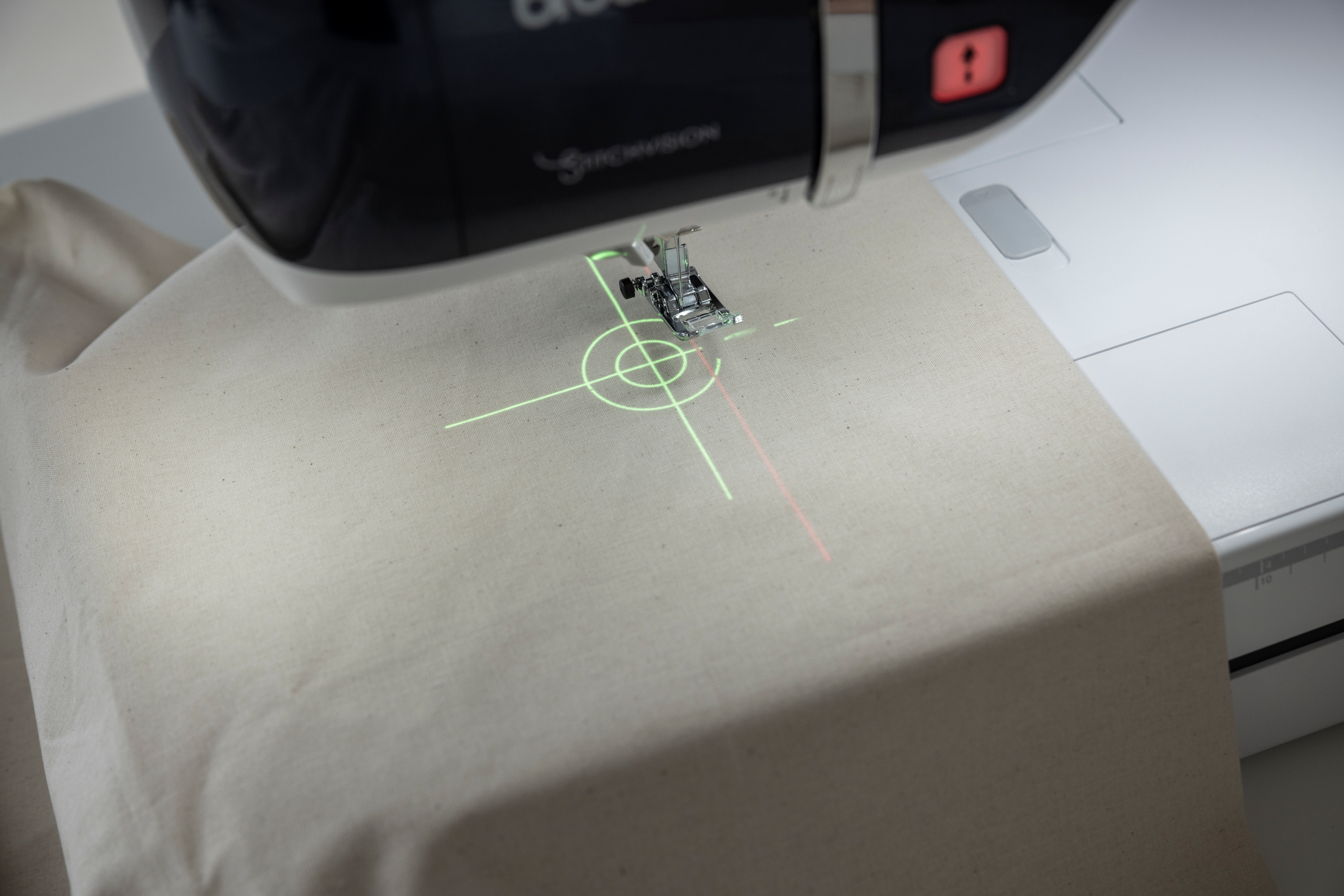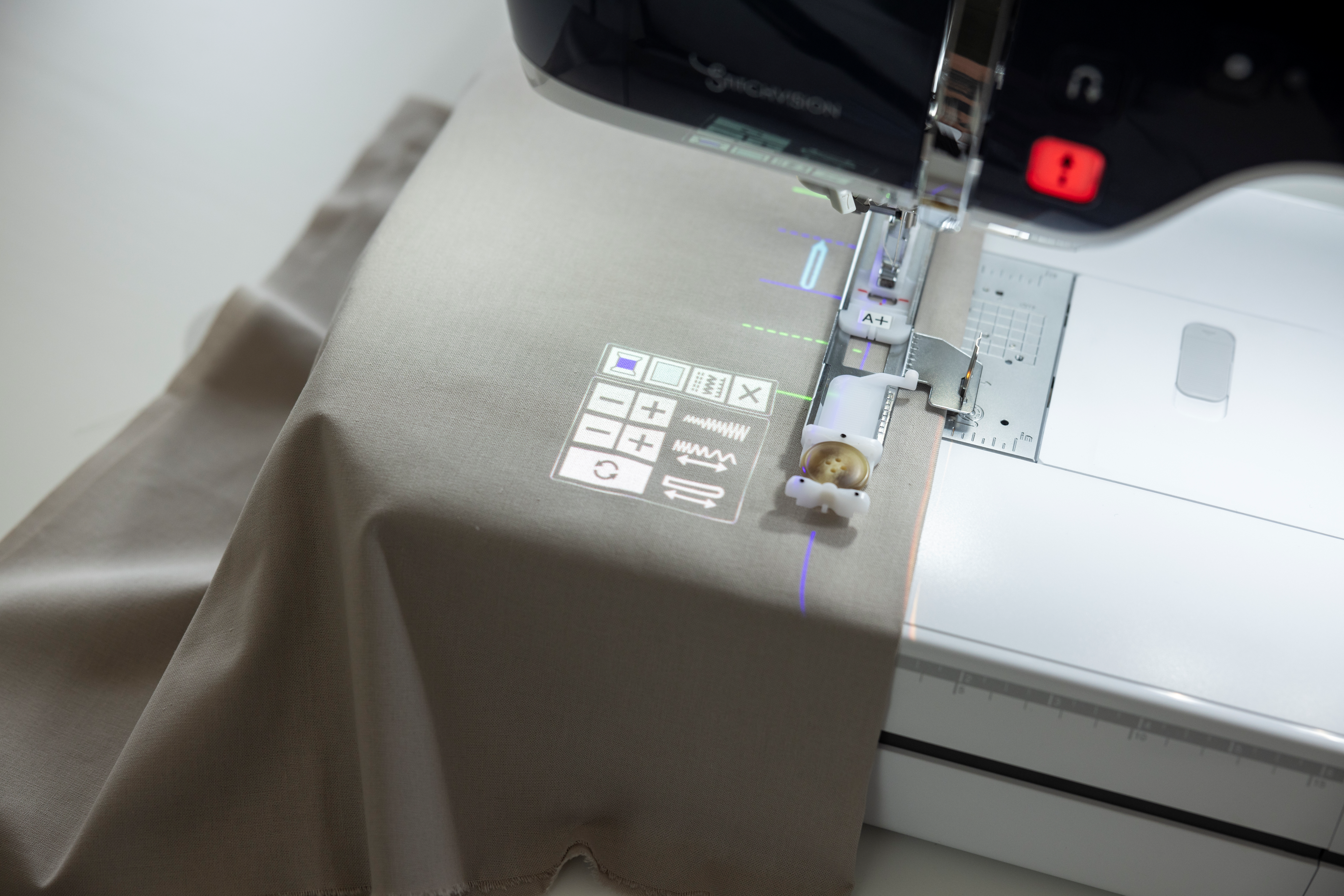 An enlightened way to preview stitches before making them. Using intelligent light projection, StitchVision Technology is like seeing into the future - providing the ability to preview, audition, and edit designs and stitches directly on fabric. This advanced feature helps simplify the creation of multiple rows of stitches, parallel stitching, pin tucks, and decorative stitches. More than 2.5 times larger than the Luminaire XP series machine, the enhanced projection area measures an outstanding 8" x 5" (127 x 203 mm). Projecting stitches and designs, it now extends from 90º to 180º. Operational in both sewing and embroidery modes, it enables real-time editing within the projection area and provides the added luxury of moving, resizing, and rotating directly on fabric. It includes a square for angles and a circle for echo stitching, and projects an illuminated grid for easy-to-follow precision. Projecting in one of 16 color options, the updated projector displays images on fabrics in clear, easy-to-see resolution.