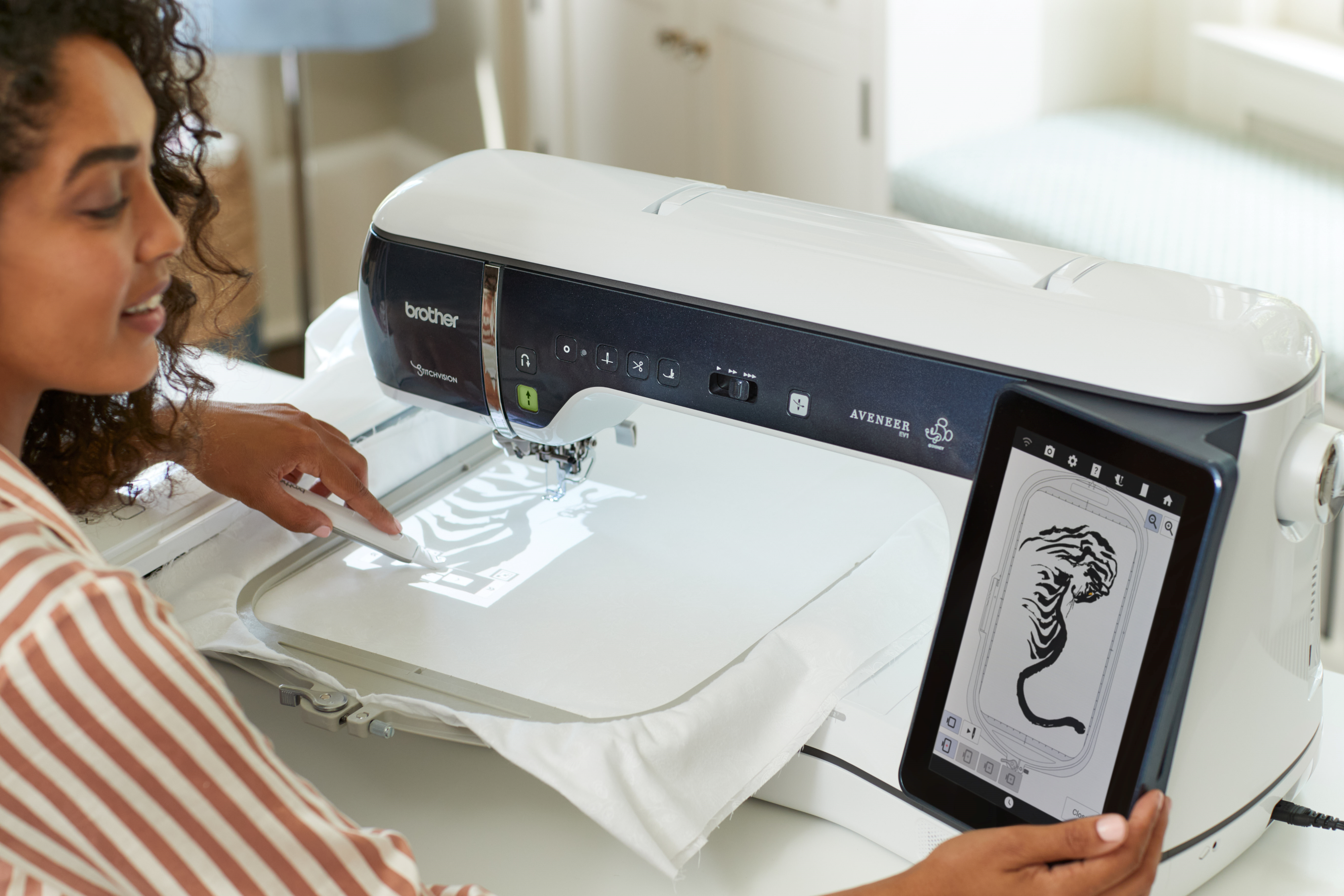 Brother invites you to discover the future of sewing, embroidery and quilting in the sleek lines and advanced features of the industry-leading Aveneer EV1. Offering a powerful combination of dynamic luxury, seamless wireless connected features, and built-in Disney designs, it's the epitome of engineering excellence. With the largest workspace of any Brother flatbed machine ever available, its precise projection and list of high-end features make it the ultimate choice for today's modern makers. Promising a best-in-class experience, the Aveneer EV1 elevates creativity to soaring new levels,