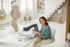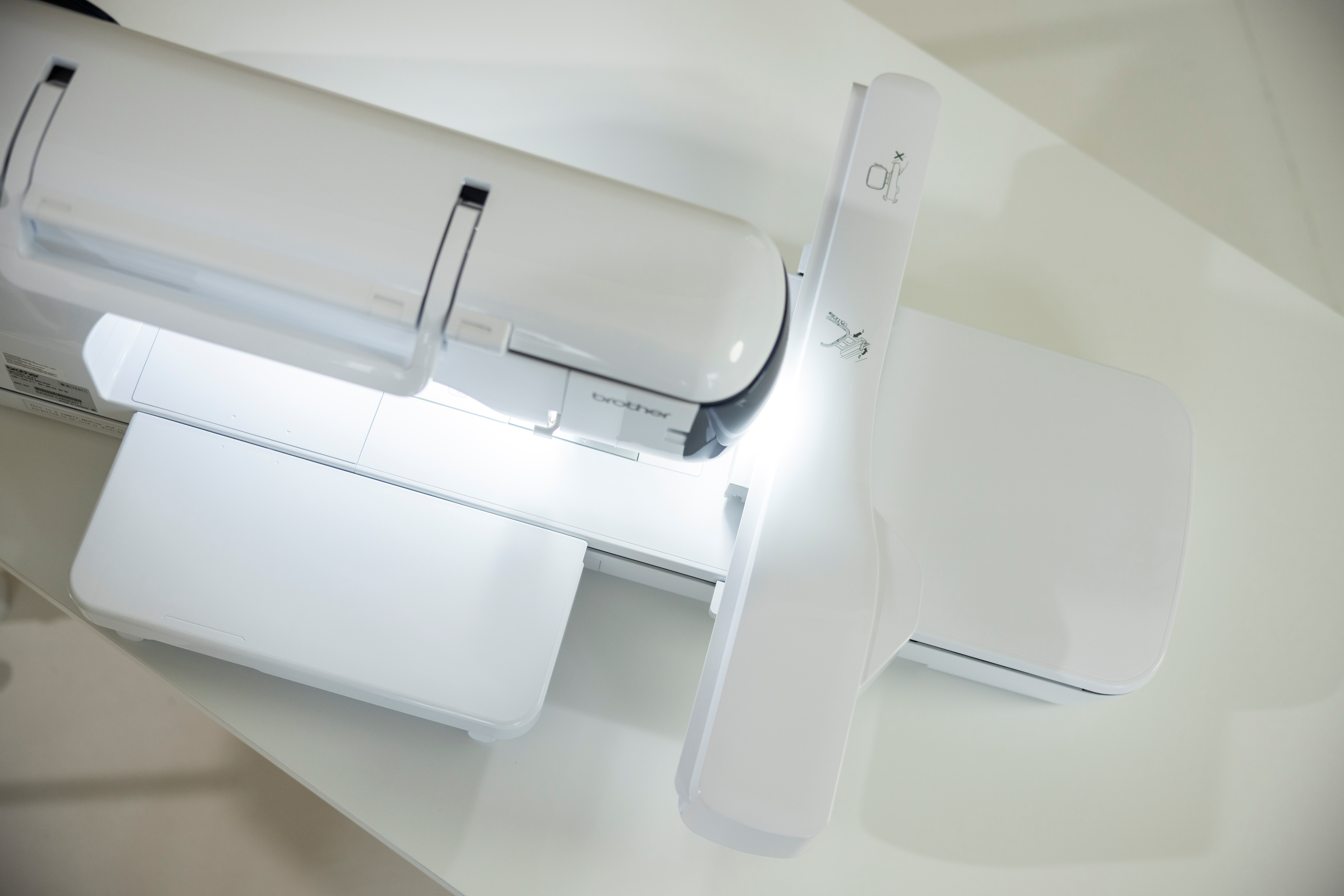 Effortlessly create projects of almost any size with the Aveneer EV1. The impressively large workspace features a 14.1" needle-to-arm distance that’s ideal for working with one-of-a-kind upcycled creations, king-sized quilts, custom garments, and unique home décor. The industry leading 11 ⅝" x 18 ¼" embroidery frame is the largest and most advanced ever offered by Brother. Project stitches or designs onto an 8"x5" projection area, allowing for precise placement and editing. The enhanced lever release makes it even easier to hoop. There's an included support table to support this larger hoop, making the Aveneer EV1 perfect for sizable sewing and embroidery projects.