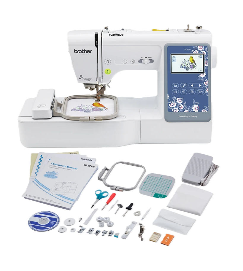 ¡La combinación de máquina de coser y bordar de 4" x 4" de Brother SE630 le ofrece más! Más color con una gran pantalla LCD táctil a color, más diseños (400 diseños descargables), más fuentes, más espacio de trabajo y funciones para la costura creativa. Vea sus diseños de bordado a todo color en la gran pantalla táctil LCD en color Sew Smart de 3,7" y obtenga una vista previa de sus ediciones de diseño en la pantalla, antes de coser. Las funciones ampliadas de edición de diseños de bordado incluyen la capacidad de cambiar colores de hilo individuales, colocar letras en un arco, mueva diseños en la pantalla táctil con el toque de un dedo y mucho más. Elija entre diseños de bordado nuevos e inspiradores incorporados y diseños descargables, o importe sus propios diseños a través del puerto USB. Las funciones de costura incluyen 103 versátiles -en puntadas de costura, aguja arriba/abajo y controles de velocidad variable y alimentación de caída para costura creativa de movimiento libre.