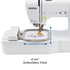 • Campo de bordado de 4 x 4 pulgadas, con un aro de 4 x 4 pulgadas incluido, brazo de bordado y pie de bordado