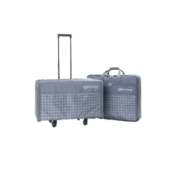 Two-piece rolling bag set features 360 degree wheels and telescoping handle