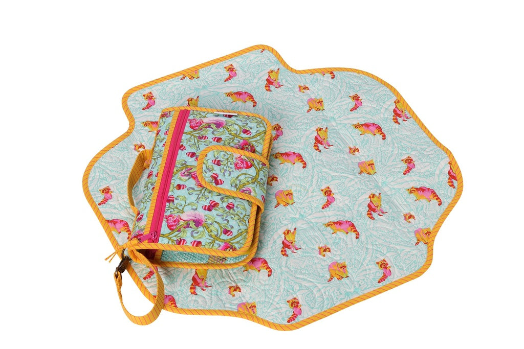 This compact set is perfect for changing baby on the go! The attractive wallet-style clutch unfolds to access a large, padded changing pad and pockets to store all the essentials. The extra-large baby changing pad is fully padded to provide comfort for your little one. The pad removes for easy laundering or to allow the clutch to be used separately. The pattern includes instructions for using PUL (polyurethane laminate) fabric to make a pad with a wipe-clean lining. An outer zippered pocket on the clutch holds personal items and a handy flap closes the folded clutch, keeping everything contained and easily accessible. Drop it in any bag, strap it to your wrist, or clip it to your stroller and you're good to go.