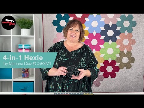 This 4-1/2in Hexie designed by Mariana Diaz for Creative Grids® cuts four different shapes, all from strips, and all easy to follow. Shapes include a 4-1/2in hexagon, a 4-1/2in half hexagon, a 2-1/2in triangle, and a 2-1/2in diamond.