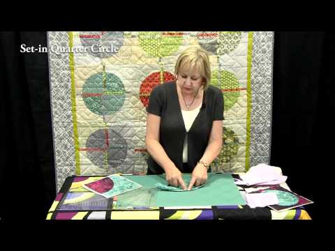 Corte círculos, semicírculos y cuartos de círculo de 3 a 15-1/2 pulgadas y cada 1/2 pulgada en el medio. Corte una plantilla de papel para congelador al tamaño final y luego corte la tela 1/2 pulgada más grande para agregar el margen de costura. Si prefieres unir curvas, recorta el fondo y los círculos con la misma regla .