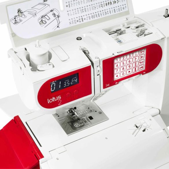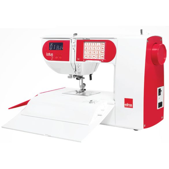Meet the all-in-one computerized sewing machine - The Elna Lotus 2! Staying true to the original Lotus models' inventive concept and nature, the Lotus 2 blends comfort, simplicity, and functionality together in a user-friendly machine. The innovative "carrying case" design makes traveling with the Lotus 2 easier than ever. The folding flaps flower open with the push of a lever creating a perfect, spacious, built-in sewing table! With features like one-touch buttons, a built-in needle threader with an automatic thread cutter, an integrated spool pin for permanent threading, to a centralized needle bar, 100 built-in stitches, and an LCD screen, the Lotus 2 is the total package. Celebrating the 50th anniversary of the legendary Lotus, Elna presents the Lotus 2, featuring a vaster selection of stitches and a snazzy Elna-red finish!