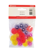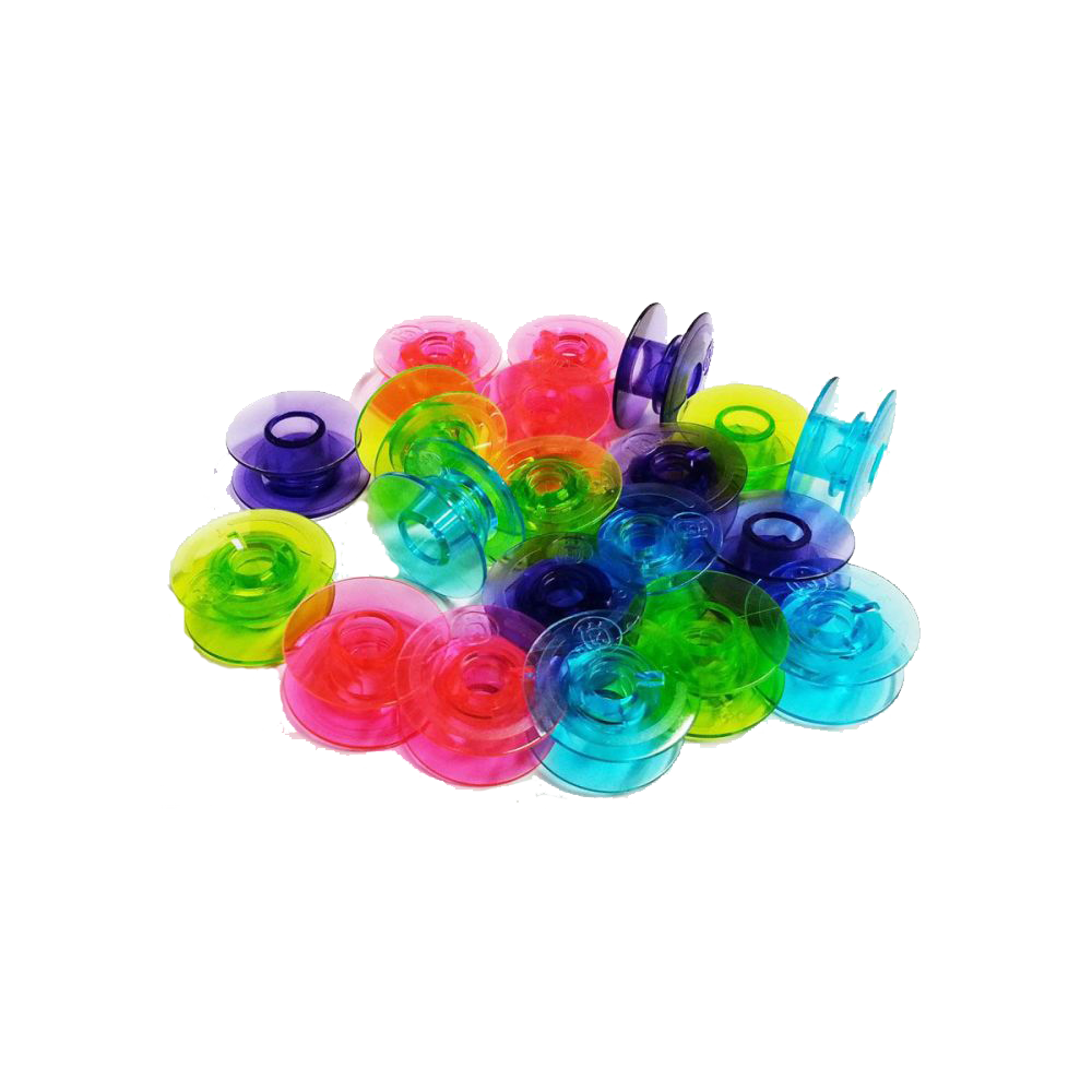 20 high quality Husqvarna Viking bobbins in 4 different colors to help you organize your specialty thread types.
