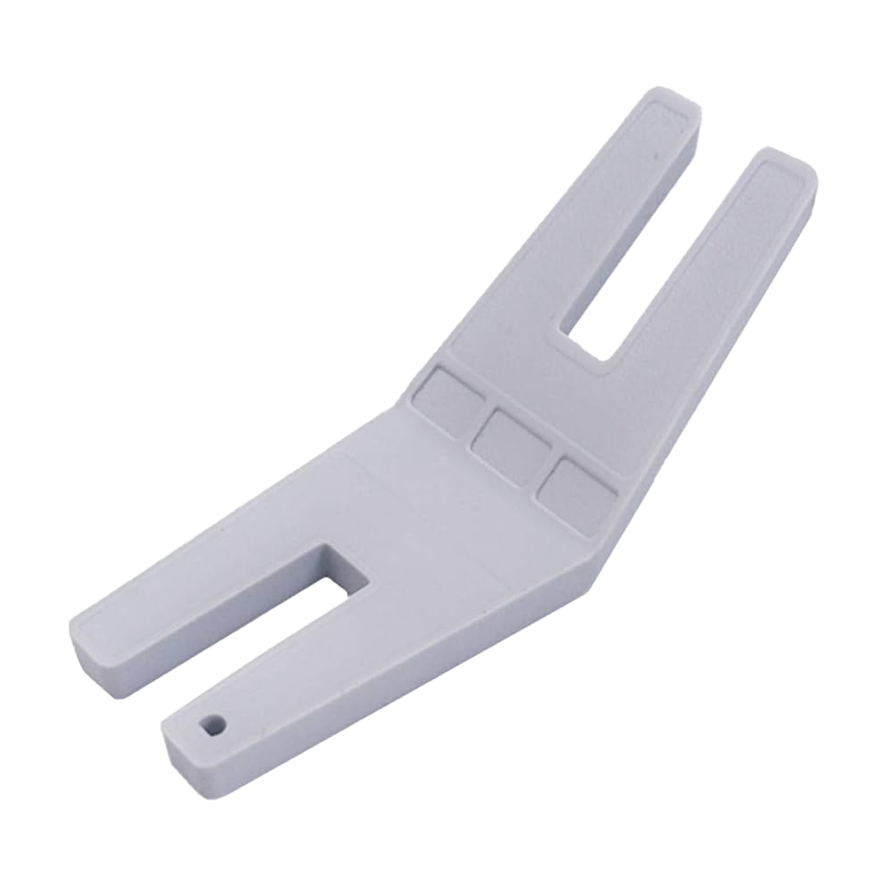 The Clearance Plate creates a thread shank when sewing buttons in place. Each end is a different thickness for more or less thread shank. It also can be used when sewing over heavy seams to balance the height of the foot.